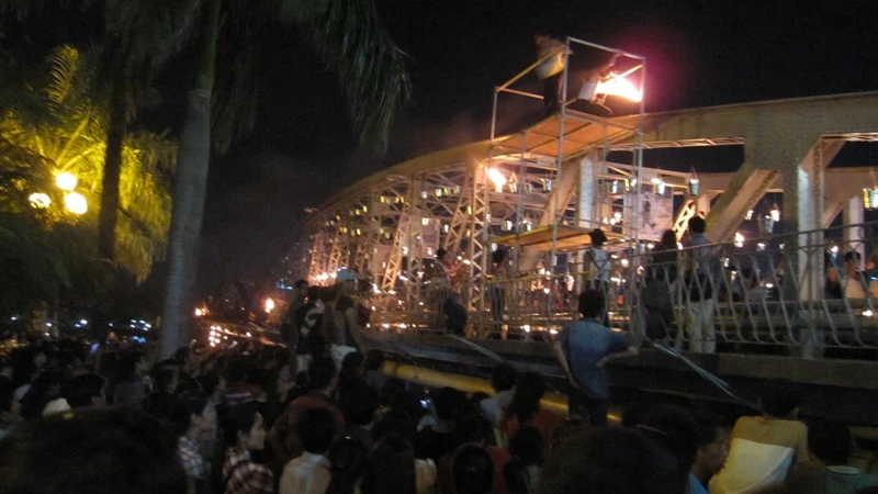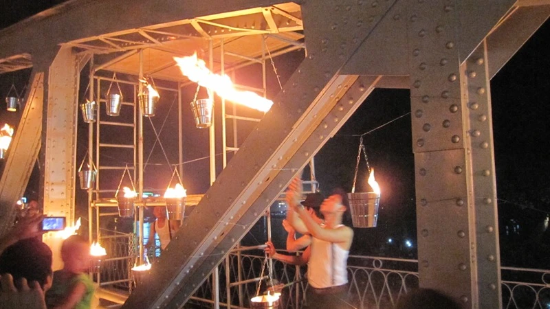 Tối 18-4, đoàn Carabosse đến từ Cộng hòa Pháp đã trình diễn màn nghệ suất sắp đặt lửa trên cầu Trường Tiền. Với mong muốn mang đến cho công chúng một loại hình nghệ thuật quảng đại, vượt qua ngôn ngữ và dễ dàng đến được với mọi tầng lớp khán giả…