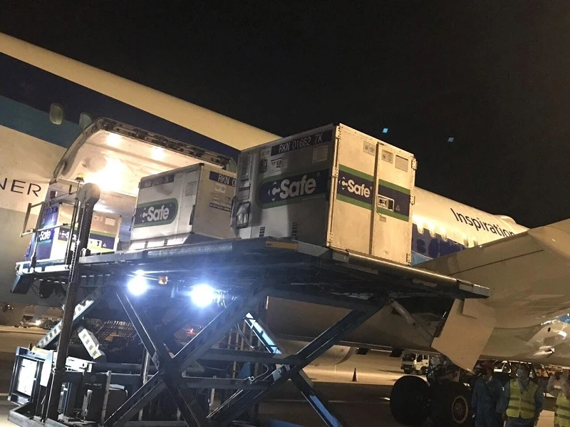 Lô vaccine đựng trong năm thùng chuyên dụng có tổng khối lượng 934,6 kg. Quy trình bảo quản, phục vụ vận chuyển vaccine rất nghiêm ngặt như áp tải từ máy bay, sử dụng camera hành trình trong suốt quá trình áp tải.