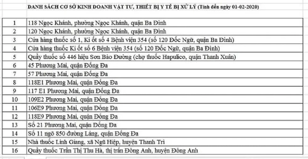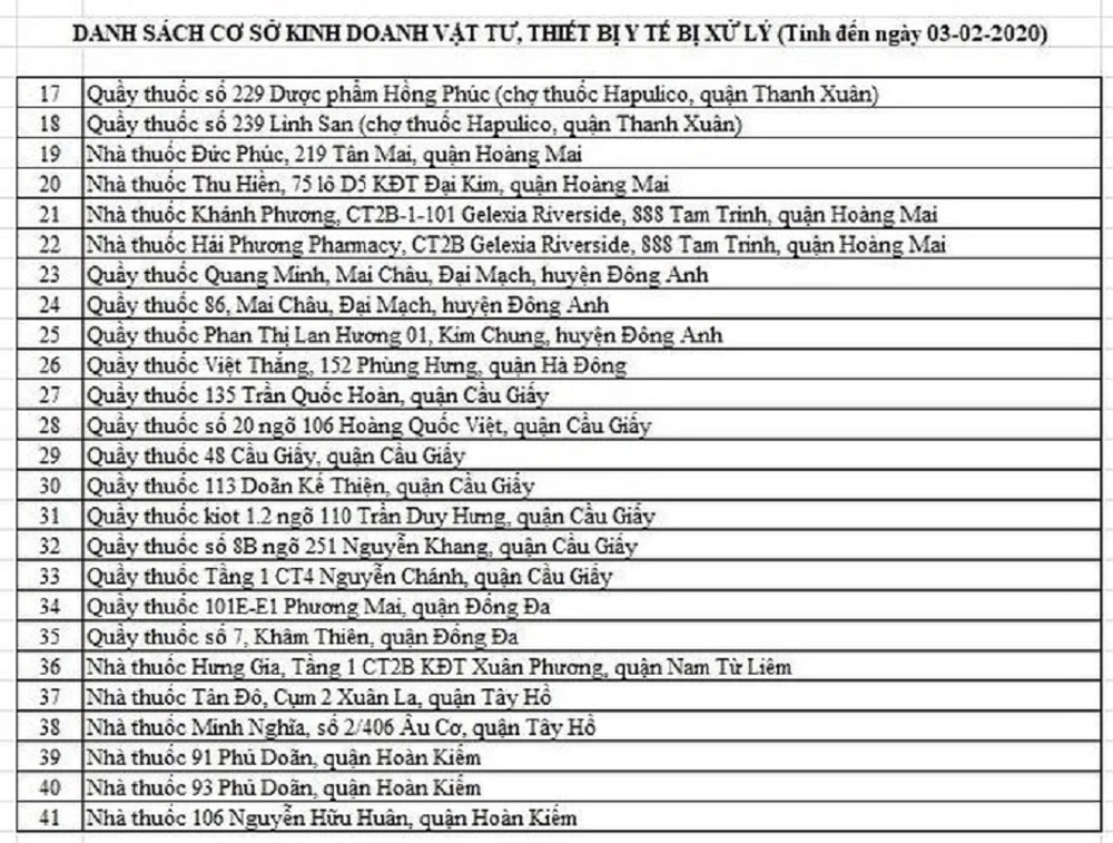 Danh sách 41 hiệu thuốc bán khẩu trang giá "cắt cổ" bị công an xử lý.