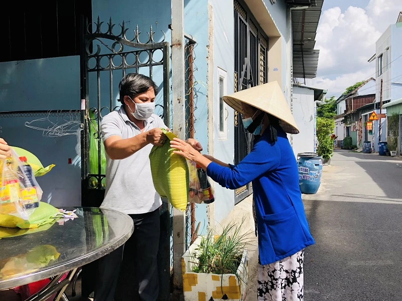 Cộng đồng chung tay hỗ trợ người khó khăn do dịch COVID-19, gạo và nhu yếu phẩm. Ảnh: PHONG ĐIỀN