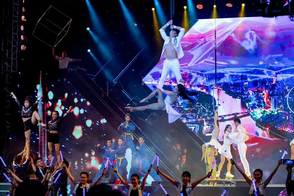 Các nhóm thể dục đồng diễn, võ thuật Vovinam, nhóm xiếc Phương Nam thể hiện tiết mục xiếc với niềm tin vào thành phố Hồ Chí Minh năng động và không ngừng đổi mới.