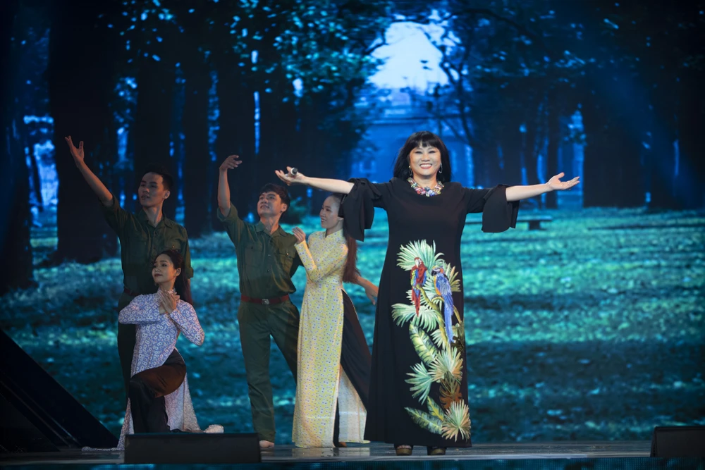 NSND Tạ Minh Tâm mở đầu đêm nhạc với ca khúc "Rực rỡ tên vàng Thành phố Hồ Chí Minh".