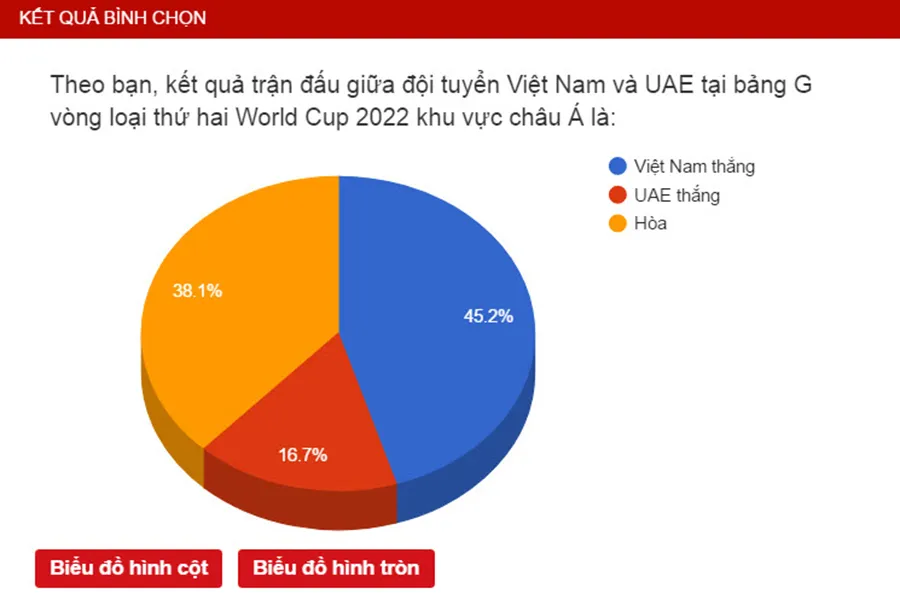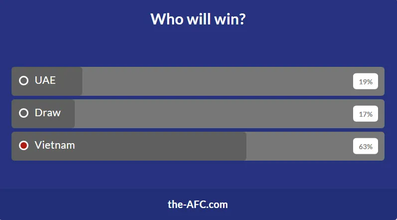 Trước trận đấu này, báo Pháp Luật TP.HCM đã đưa ra thăm dò bạn đọc về kết quả trận đấu giữa đội tuyển Việt Nam và UAE.