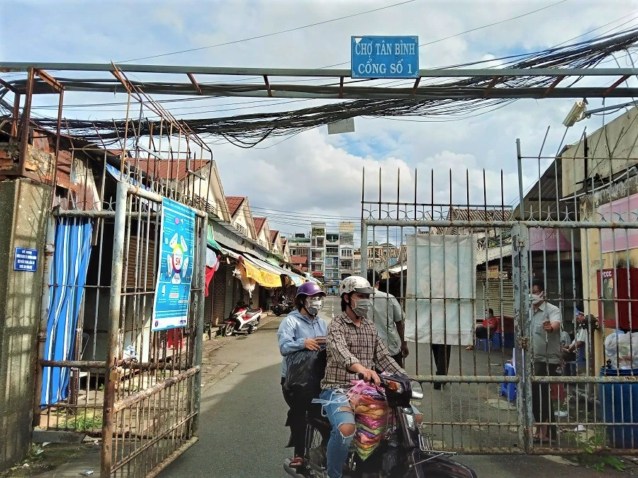 Chợ Tân Bình là chợ sỉ về quần áo thời trang, vải, phụ kiện đồ cưới nổi tiếng đến nay ngành hàng này vẫn chưa mở. Trong chiều ngày 12-10 các tiểu thương được vào chợ lấy hàng đem về bán qua online.