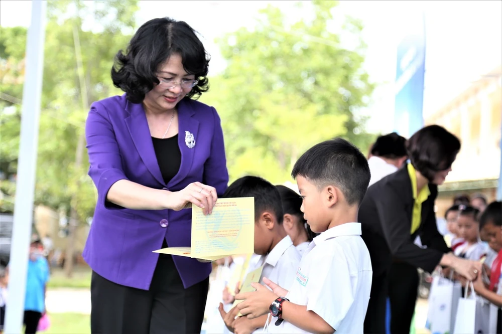 Phó Chủ tịch nước Đặng Thị Ngọc Thịnh trao học bổng cho các em học sinh tiêu biểu.