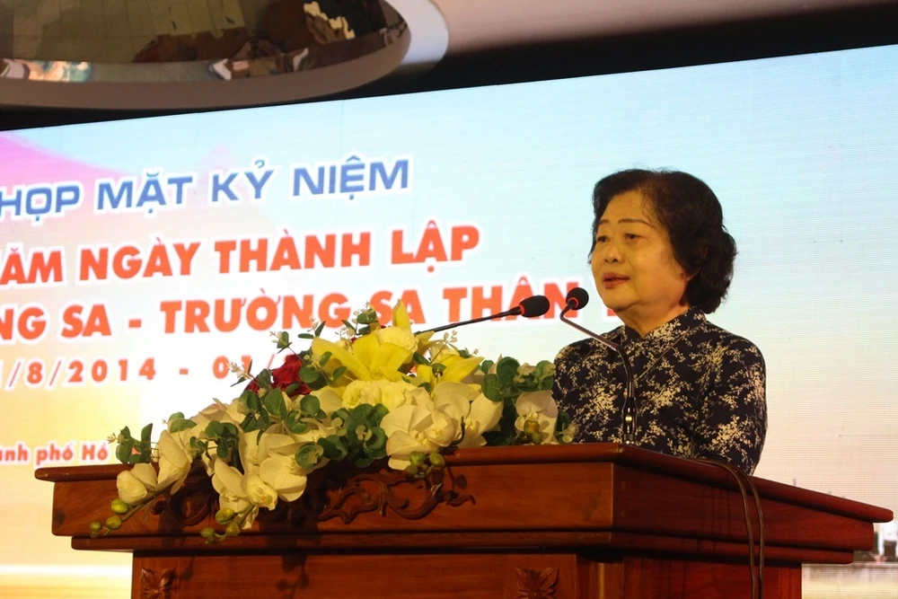Bà Trương Mỹ Hoa cảm ơn sự đồng hành của các cá nhân, tập thể gắn bó với câu lạc bộ Vì Trường Sa-Hoàng Sa thân yêu. Ảnh: HOÀNG LAN