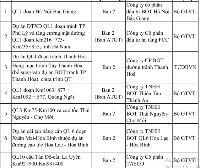 Trong đó, Ban Quản lý dự án được Bộ GTVT giao kiểm tra quyết toán, trình cơ quan nhà nước có thẩm quyền theo kế hoạch quyết toán đã giao. Chậm nhất trong năm 2021 phải trình quyết toán dứt điểm toàn bộ các phần còn lại chưa được thỏa thuận quyết toán của toàn bộ dự án BOT.