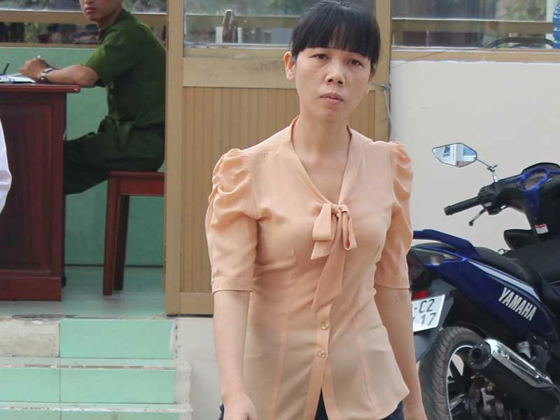 Chị Ngọc, người bị hại trong vụ án, trong một lần đến làm việc tại cơ quan công an. Ảnh: TD