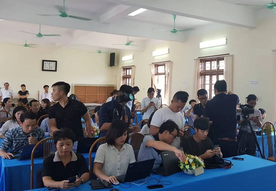 Phóng viên gần 50 cơ quan báo chí tại cuộc họp báo điểm thi Sơn La.