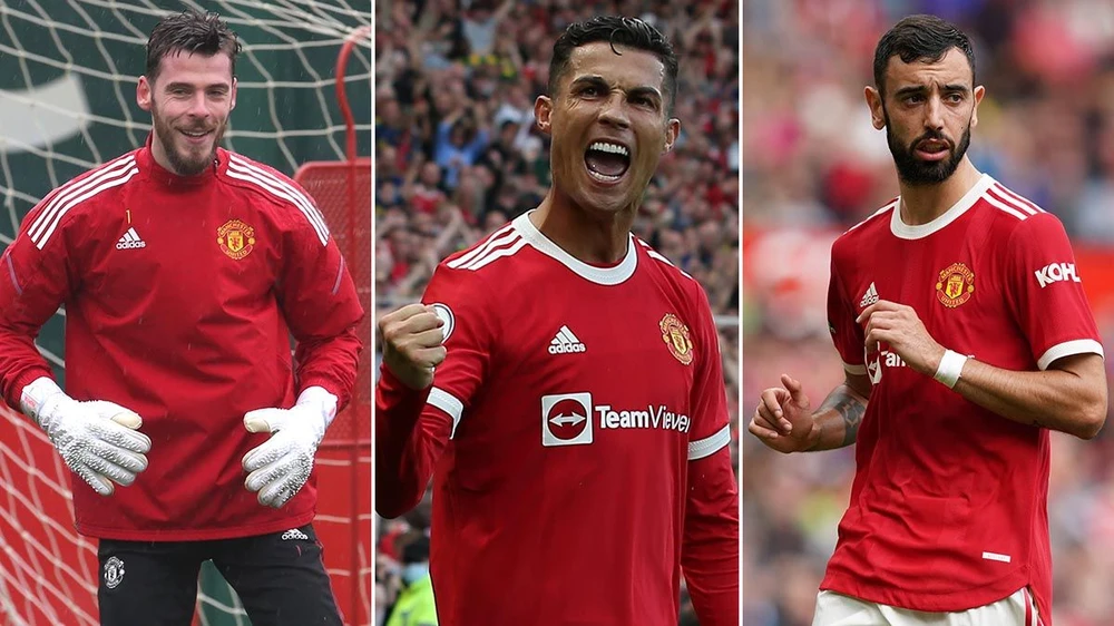 Ronaldo, De Gea và Bruno Fernandes là 3 cầu thủ hay nhất MU mùa này. ẢNH: MIRROR