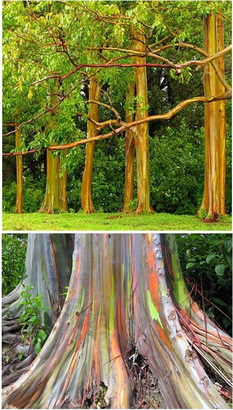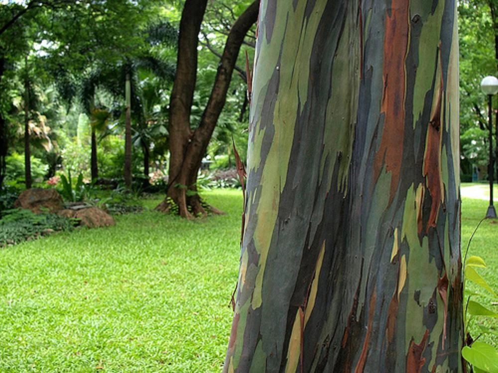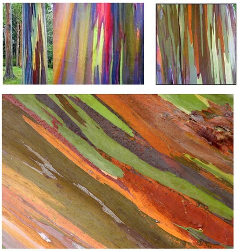Quả thật thân loài cây này là một tác phẩm hội họa đặc sắc, lý do là lớp vỏ cây Deglupta bị bong ra liên tục và tạo ra các họa tiết kỳ lạ thay đổi màu sắc theo thời gian.