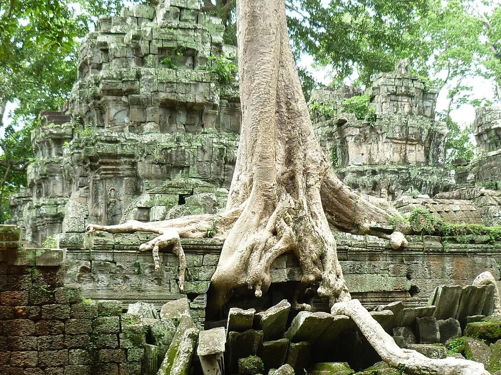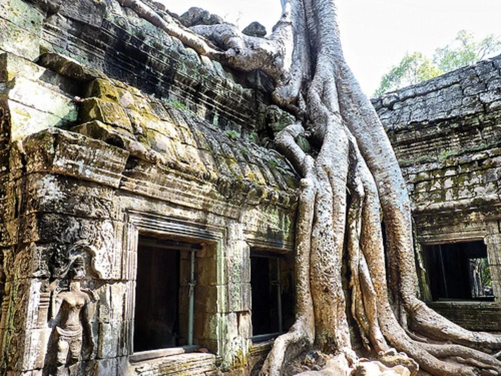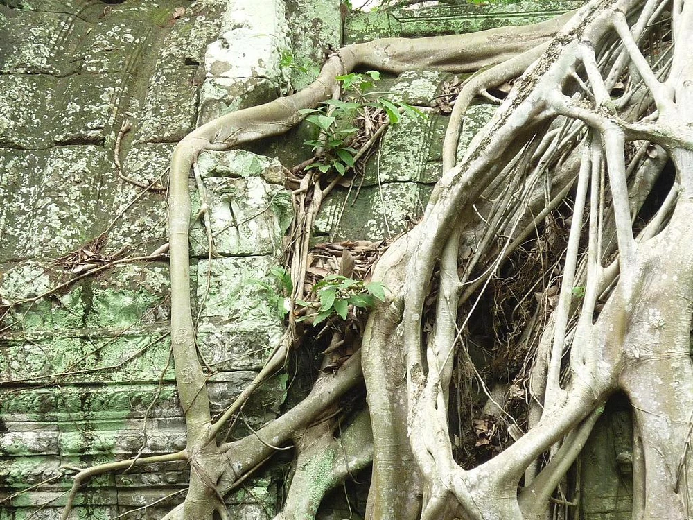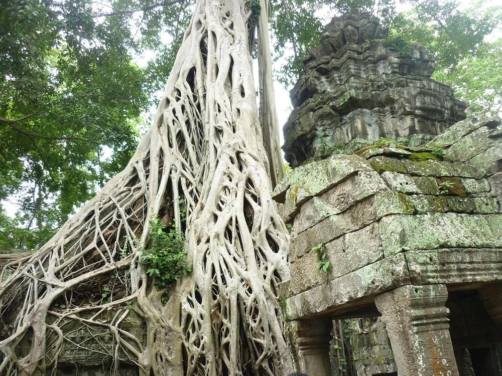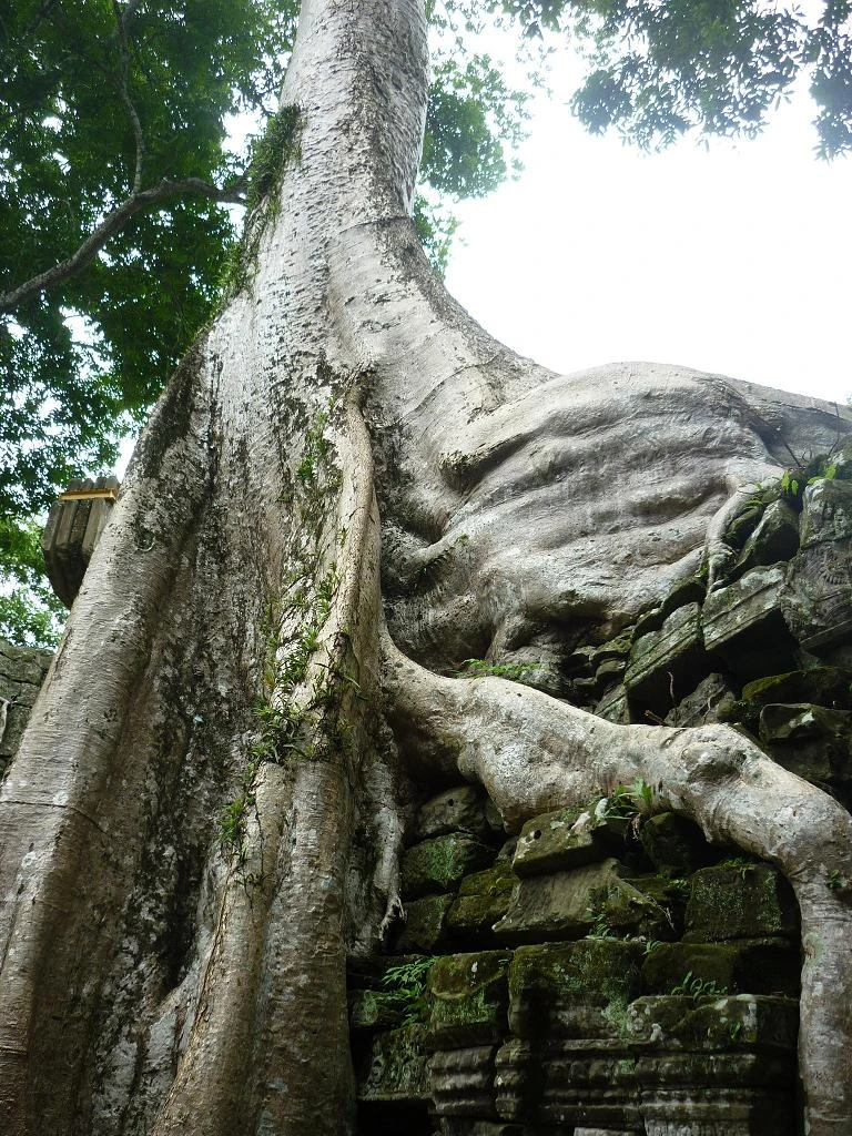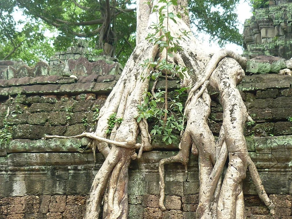 Cây gòn khổng lồ này mọc bao phủ lên ngôi đền Ta Prohm tại Campuchia. Nói chung, hệ thực vật thật sự đã phát triển mối liên hệ mật thiết hòa quyện tại các khu đền Angkor.