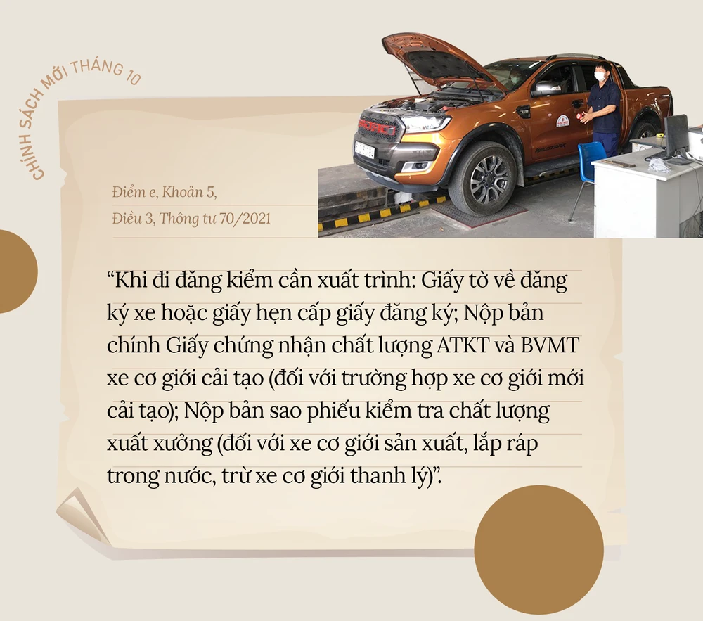 Thông tư 16/2021 của Bộ Giao thông Vận tải có hiệu lực kể từ ngày 1-10 có nhiều nội dung mới liên quan đến việc đăng kiểm ô tô như: