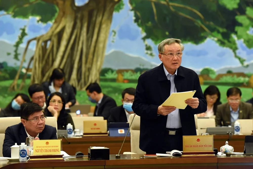 Trình bày tờ trình về việc thành lập TAND TP Thủ Đức, Chánh án TAND Tối cao Nguyễn Hòa Bình nêu năm đề xuất.