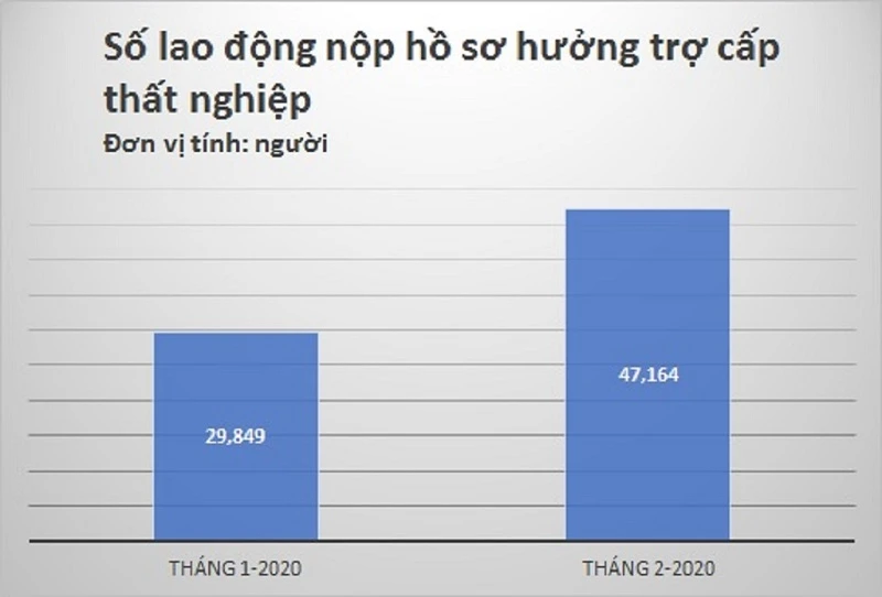 Biểu đồ số lao động nộp hồ sơ hưởng trợ cấp thất nghiệp hai tháng đầu năm 2020. Nguồn: Bộ LĐ-TB&XH