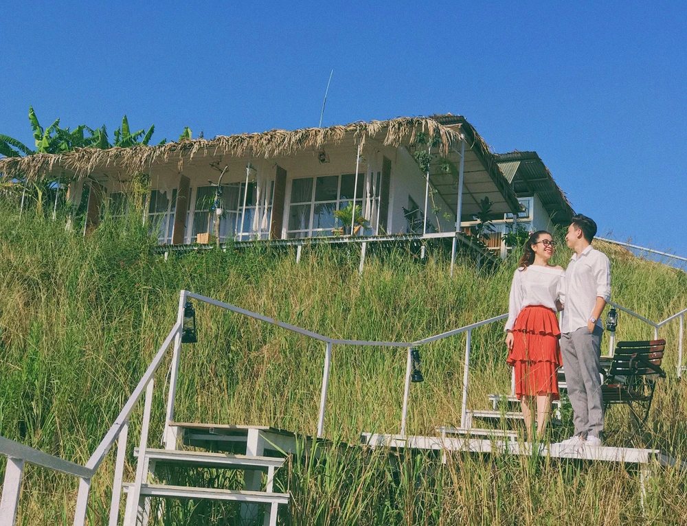 Ấn tượng với du khách là một cầu thang màu trắng dài, hai bên là đồng cỏ xanh mướt. Mùa gió heo may, những cây cỏ nở hoa càng làm cho phong cảnh thêm phần cuốn hút.