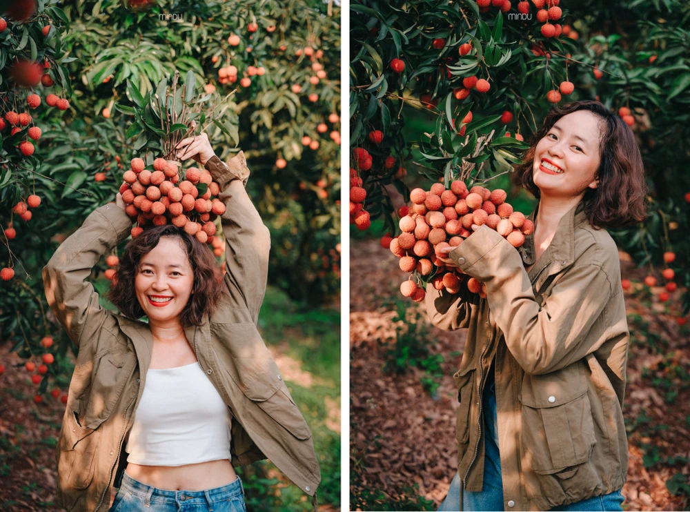 Chị Thùy Dương chia sẻ: “Đến nơi đây không chỉ lạc trong sắc đỏ khắp mọi nẻo đường mà còn được thưởng thức những trái vải chín mọng ngọt thơm và chìm đắm trong những thanh âm trong trẻo của núi rừng xanh mát, đầy thơ mộng.”