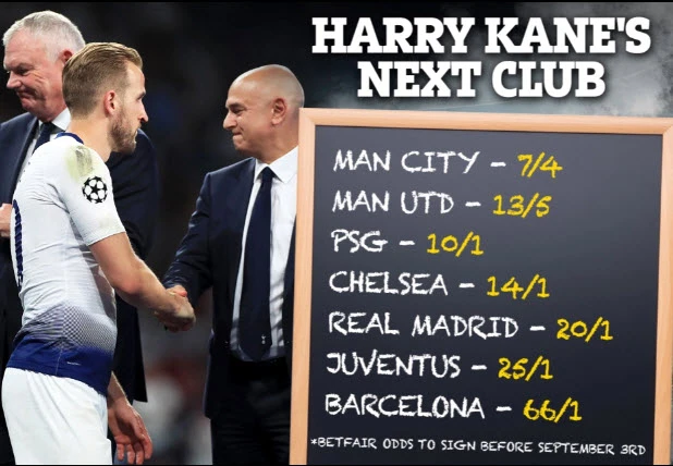 Manchester City được cho là ứng cử viên số 1 có Harry Kane. Các nhà cái đều cho rằng Man City là CLB dễ thuyết phục Harry Kane đến phục vụ nhất. Man City là nơi có khả năng cho Kane danh hiệu mỗi mùa giải thay vì “tủ truyền thống” trống rỗng ở Tottenham.