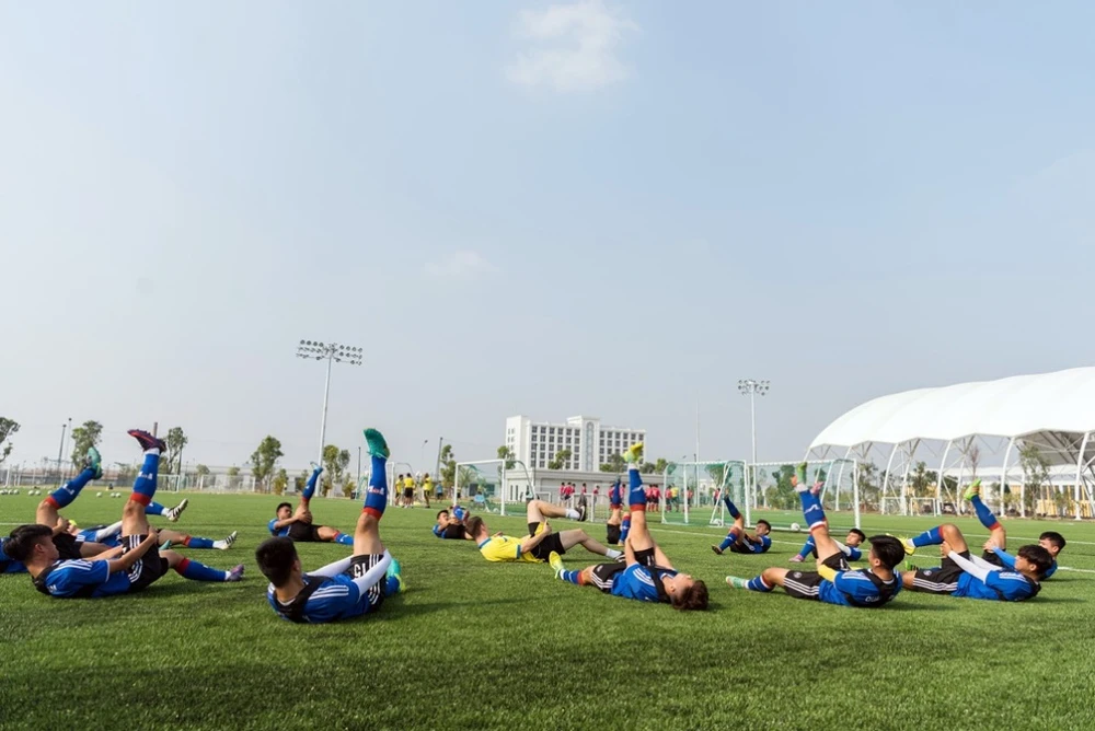 Học viên PVF đang tập luyện tại Trung tâm đào tạo bóng đá trẻ PVF Hưng Yên.