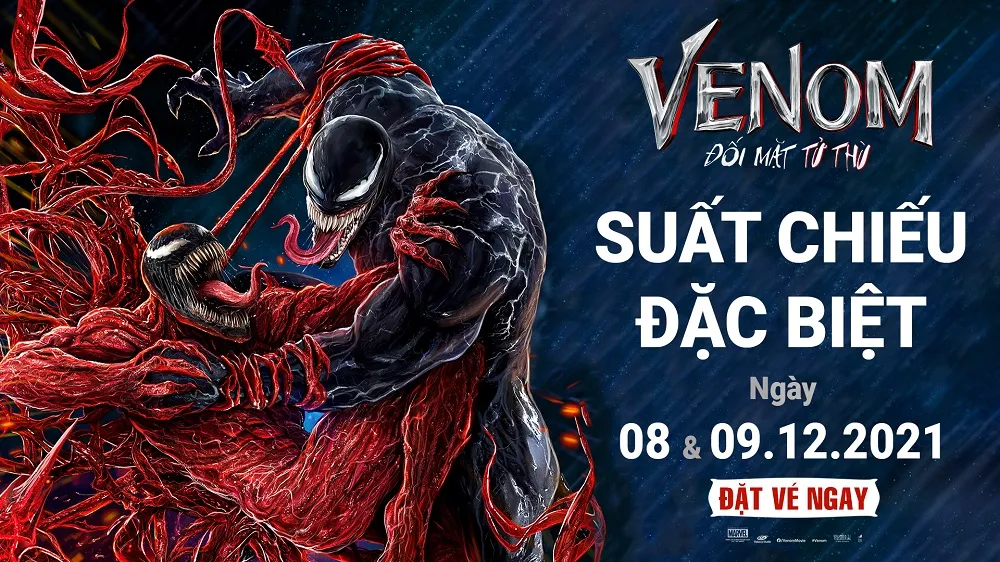 Venom: Let There Be Carnage có suất chiếu đặc biệt ngày 8 và 9-12 và khởi chiếu chính thức hôm nay, 10-12 tại các rạp trên toàn quốc.