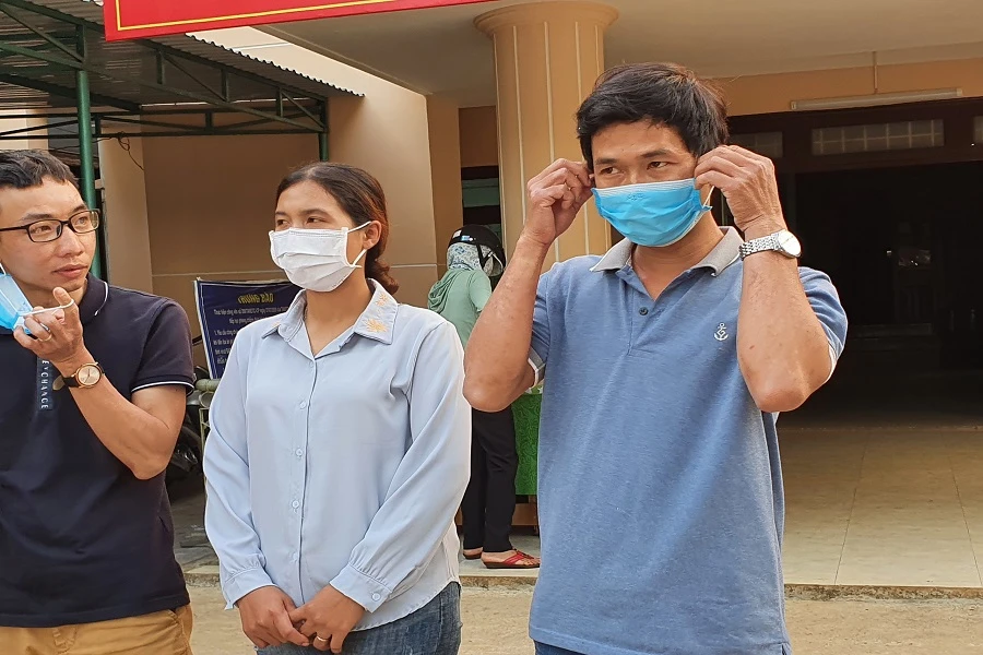 Các giáo viên sau phiên toà sơ thẩm. Ảnh QN