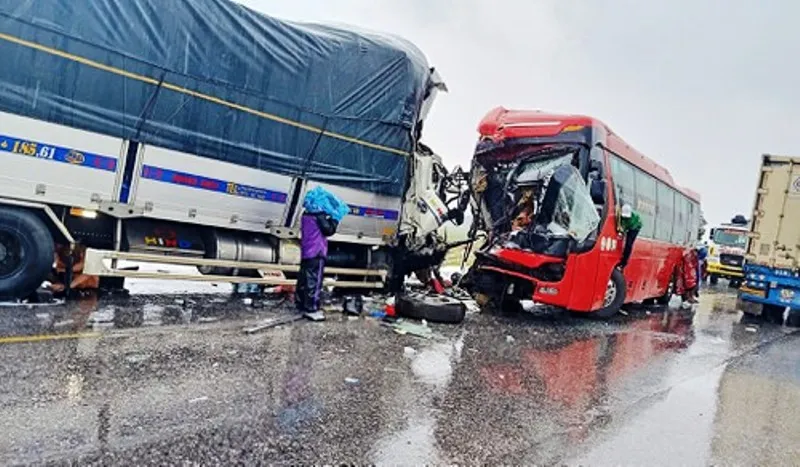 Hiện trường vụ tai nạn thảm khốc trên đường tránh TP Vinh (Nghệ An) vào ngày 15-10-2019 làm một người chết, 15 người bị thương.