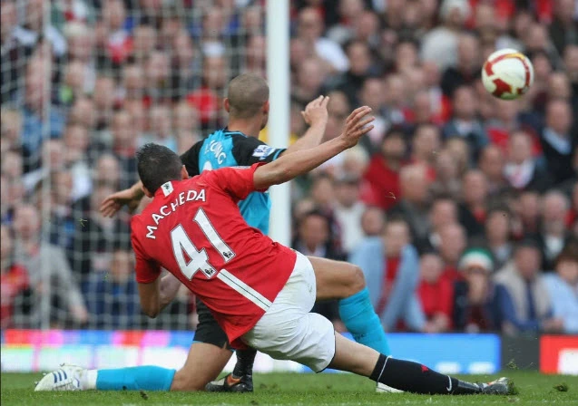 Pha xoay người ghi bàn kinh điển của Macheda. ẢNH: GETTY