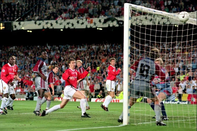 Ngay sau đó, vẫn là quả đá phạt góc của Beckham, siêu dự bị Sheringham đánh đầu rồi trong khoảnh khắc không tưởng, một siêu dự bị khác là Ole Gunnar Solskjaer đưa cái chân ra chạm bóng tung nóc lưới Bayern Munich ghi bàn ấn định chiến thắng 2-1 cho MU.