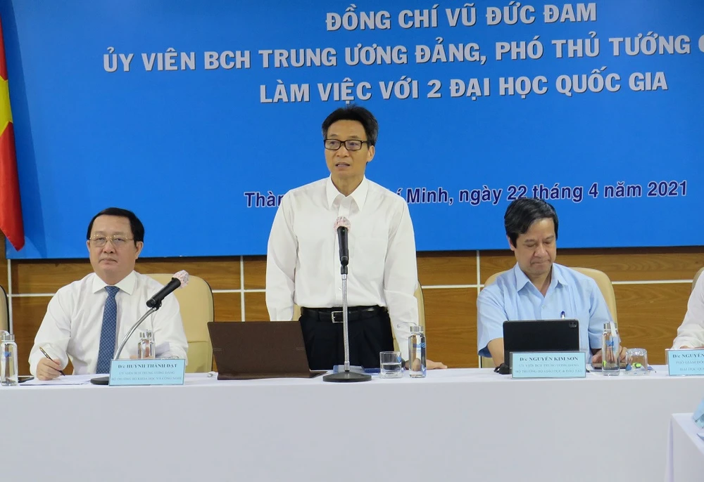 Chiều 22-4, đoàn công tác do Phó thủ tướng Vũ Đức Đam dẫn đầu cùng lãnh đạo các bộ/ngành trung ương và địa phương đã có buổi làm việc với hai đại học lớn là ĐH Quốc gia TP.HCM và ĐH Quốc gia Hà Nội.
