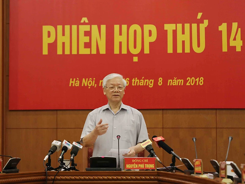 Tổng Bí thư Nguyễn Phú Trọng, Trưởng Ban Chỉ đạo Trung ương về phòng, chống tham nhũng, phát biểu chỉ đạo tại phiên họp. Ảnh: TTXVN
