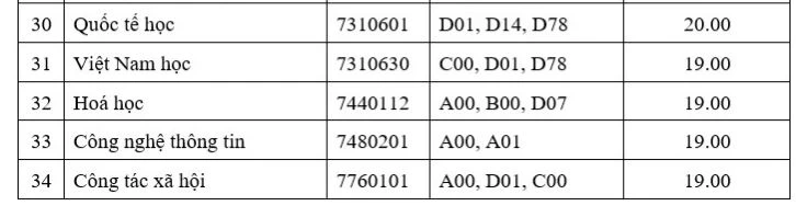 Trong đó, cao nhất là ba ngành, gồm sư phạm Hóa học, sư phạm Toán học và sư phạm tiếng Anh với 23 điểm.