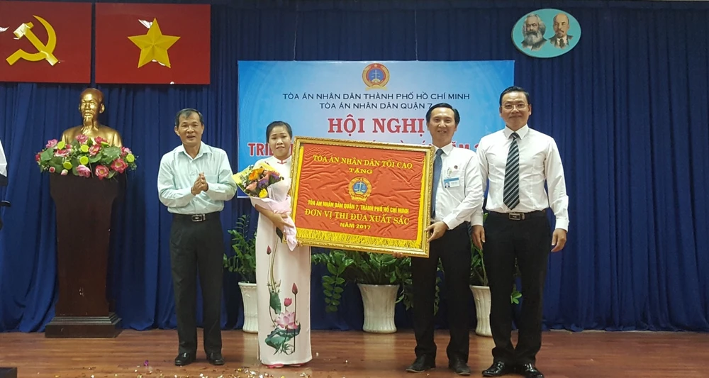 TAND quận 7 nhận danh hiệu Đơn vị thi đua xuất sắc năm 2017 do TAND Tối cao tặng.