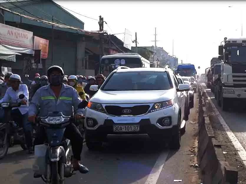 Tại hiện trường, ô tô bị móp méo, rạn nứt kính chắn gió, hai phương tiện nằm chiếm hết làn ô tô. Giao thông qua khu vực trên cũng bị ùn ứ nghiêm trọng cho đến hơn 8 giờ cùng ngày.
