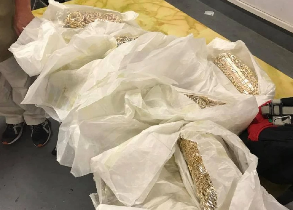 Lực lượng chức năng phát hiện nhóm này mỗi người quấn quanh bụng ba bọc chứa kim loại vàng nhưng không khai báo. Tổng trọng lượng số kim loại gần 30 kg.