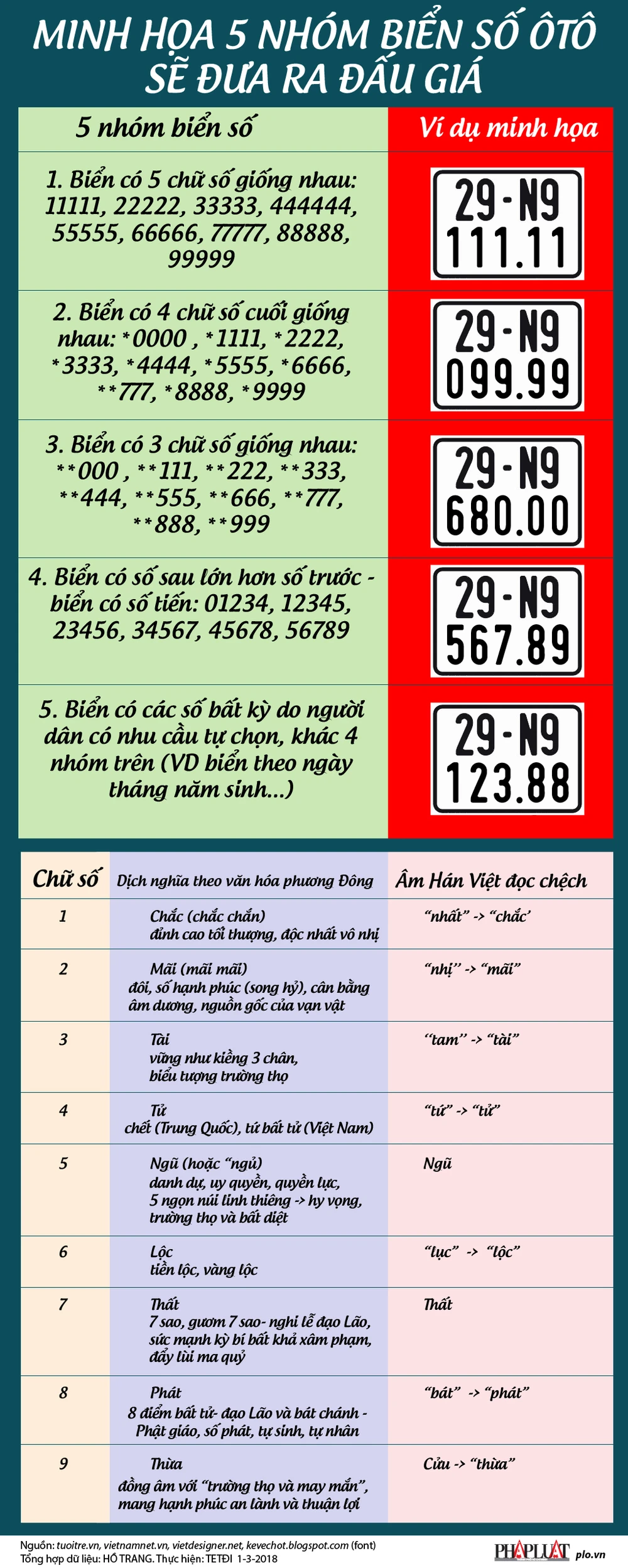 (PLO)- Mới đây, Đại tá Lê Xuân Đức cho biết dự thảo đề án cấp biển số ô tô qua đấu giá đã được tu chỉnh lần thứ năm, tạm chia thành năm nhóm. Dưới đây là một số ví dụ minh họa: