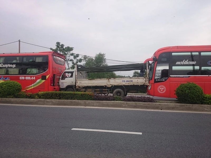 Cùng lúc đó, chiếc ô tô chở khách biển số 37B-006.44 từ phía sau cũng thắng gấp làm cho chiếc xe tải biển số 77C-054.58 đâm vào đuôi. Không dừng lại, phía sau chiếc xe chở hơn 20 hành khách biển số 60B-009.35 lại tông tiếp vào đuôi xe tải.