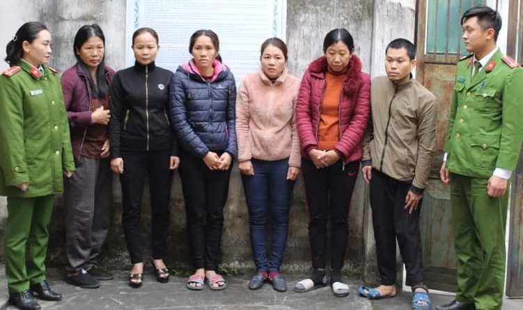 Nguyễn Văn Thưởng cùng năm phụ nữ bị Công an huyện Quỳnh Lưu bắt giữ.