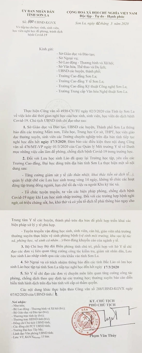 Quyết định nghỉ học của UBND tỉnh Sơn La.