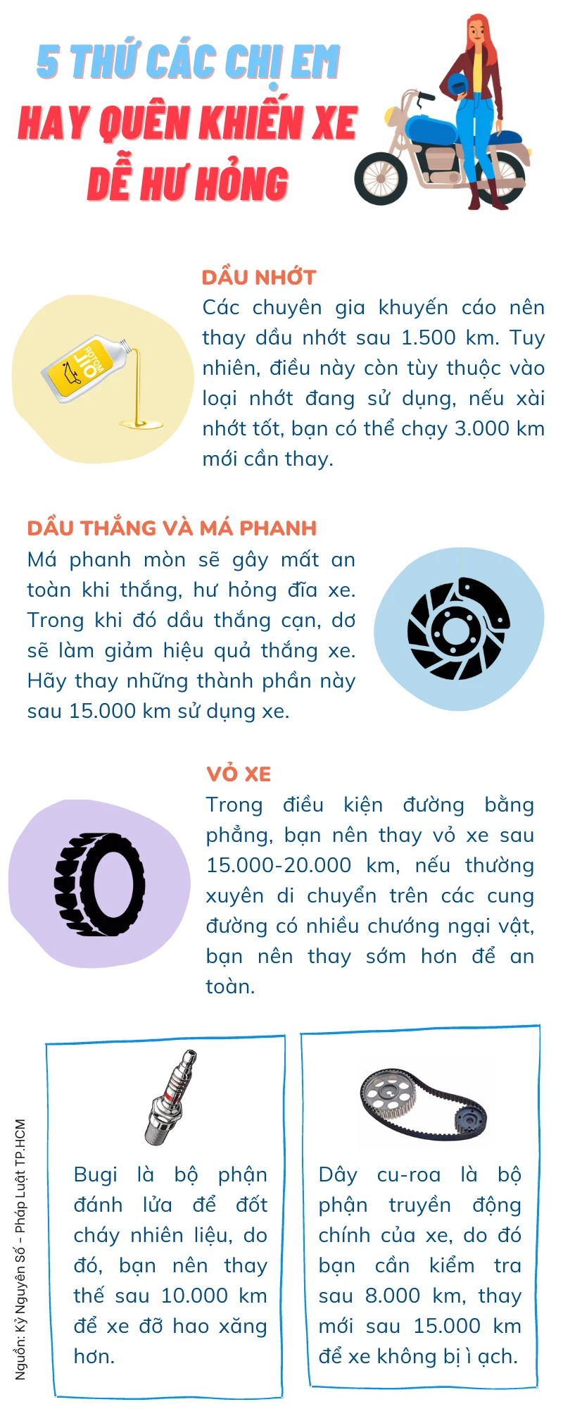 (PLO)- Đa số các chị em phụ nữ thường không rành về xe cộ, do đó, việc đi xe đến khô nhớt, bô xì khói, hết xăng... là điều thường xuyên xảy ra.