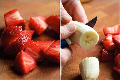 Xay dâu hoặc hỗn hợp dâu, mâm xôi, việt quất. Sau đó trộn với 250ml sữa chua không đường; 1,5 thìa cà phê mật ong. Thưởng thức ly sinh tố này hoặc xoa một lớp mỏng lên mặt và rửa sạch sau 8 phút.