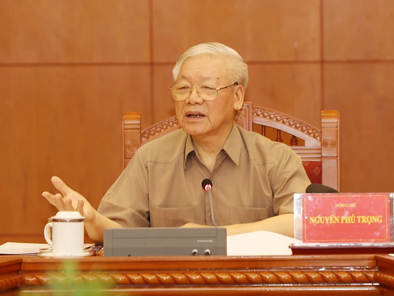 Tổng bí thư, Chủ tịch nước Nguyễn Phú Trọng phát biểu kết luận cuộc họp. Ảnh: TTXVN