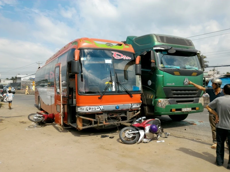 Riêng xe khách 51B-015.85 sau đó tiếp tục va chạm vào 2 xe máy khiến 2 thanh niên bị thương, trong đó một thanh niên bị nghi gãy chân.