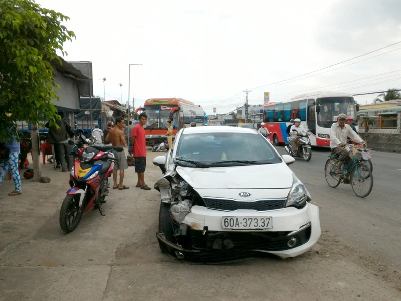 Lúc này, ô tô loại 5 chỗ 60A-373.37 đi phía sau thấy có tín hiệu rẽ nên đã giảm tốc độ và bị ô tô khách 51B-015.85 từ phía sau lao tới tông vào phần đuôi. Xe 5 chỗ lao về phía trước tông rồi mạnh vào xe tải 81C-044.91.