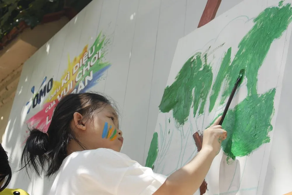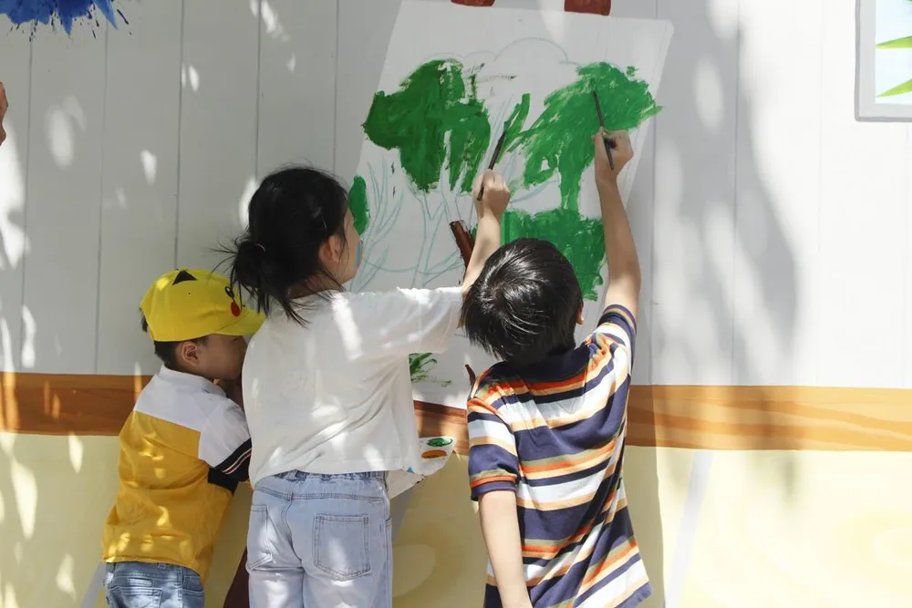 Ngày hội vẽ tranh tường không chỉ tạo không khí sôi nổi, kết nối tình yêu thương giữa ba mẹ và con cái, đây còn là dịp để các bé vui chơi lấm bẩn, trải nghiệm, vận động cơ thể, sáng tạo nghệ thuật. Đặc biệt, tác phẩm bức tranh tường này sẽ lưu giữ lại cho các em có được những kỷ niệm khó quên trong kỳ nghỉ hè của mình.
