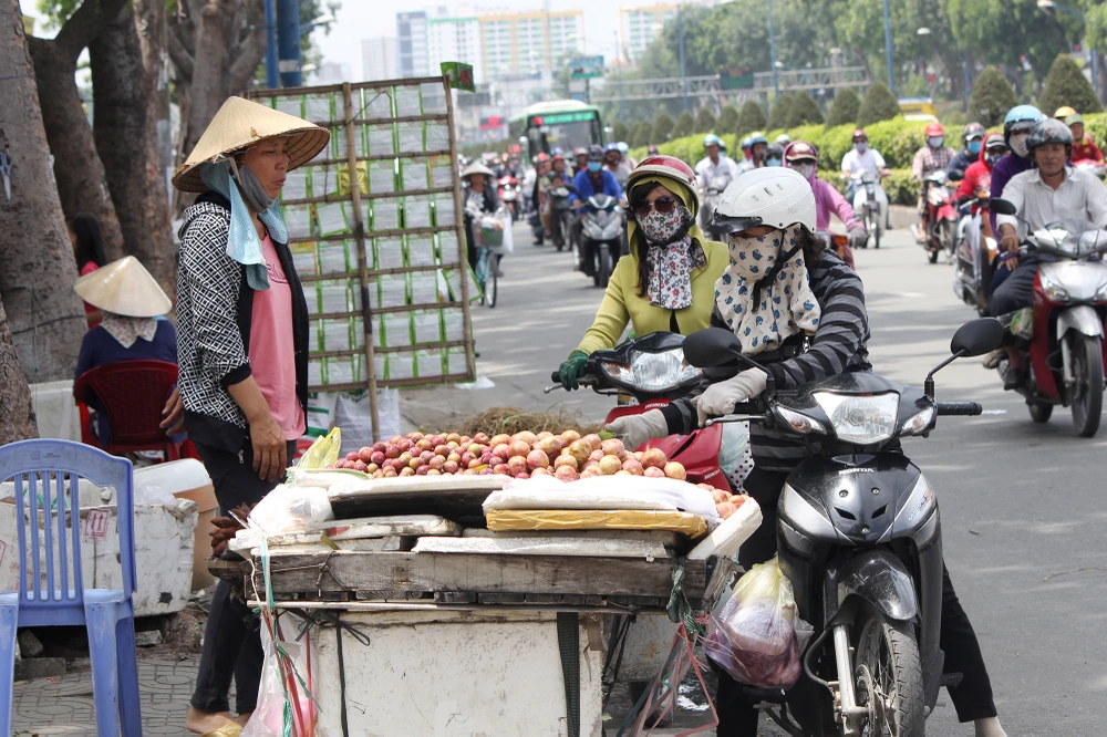 Đây cũng là đoạn đường nhiều người bày hàng hóa ra giữa vỉa hè, các xe hàng rong tập trung, gây mất mỹ quan đô thị.