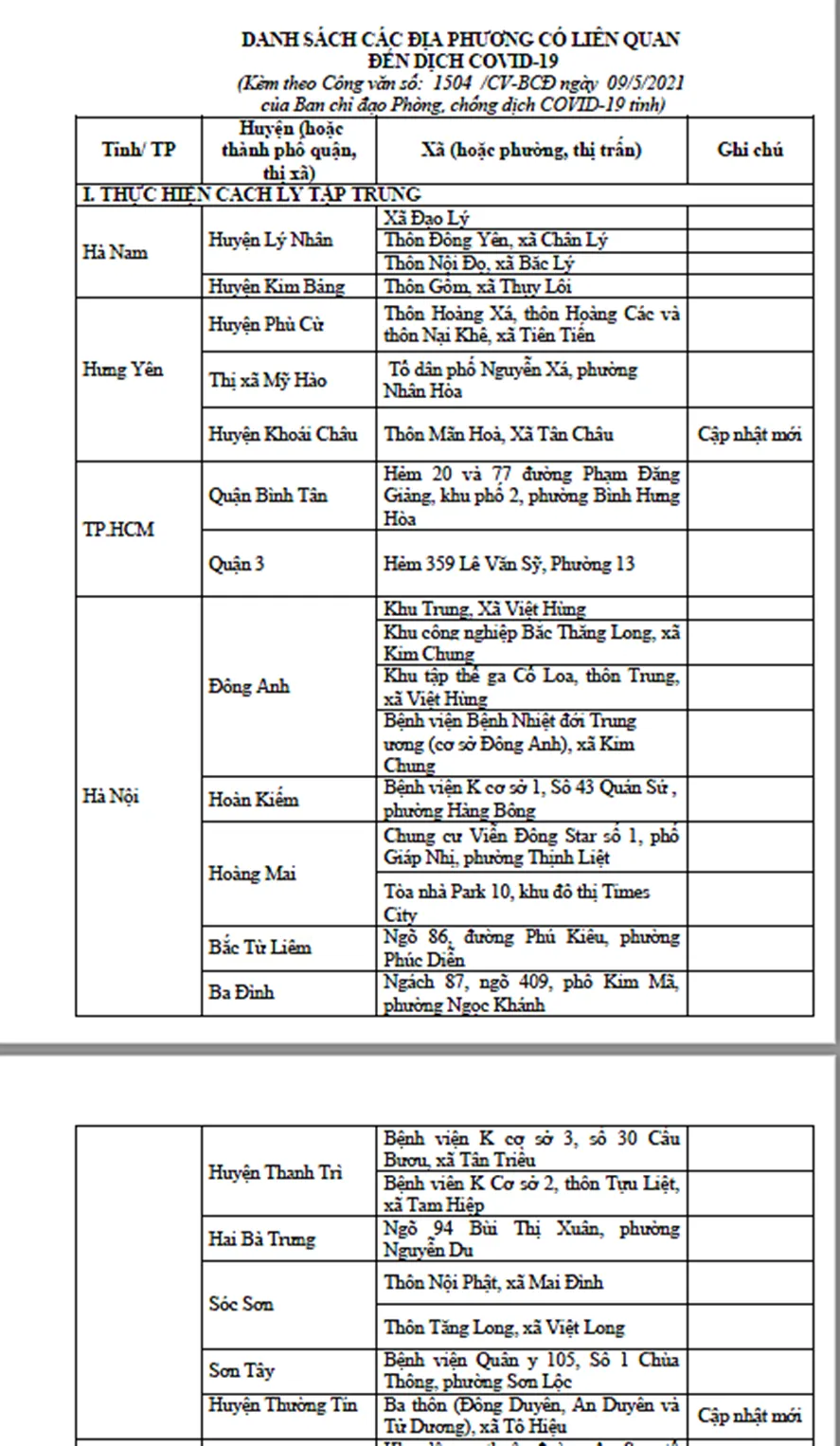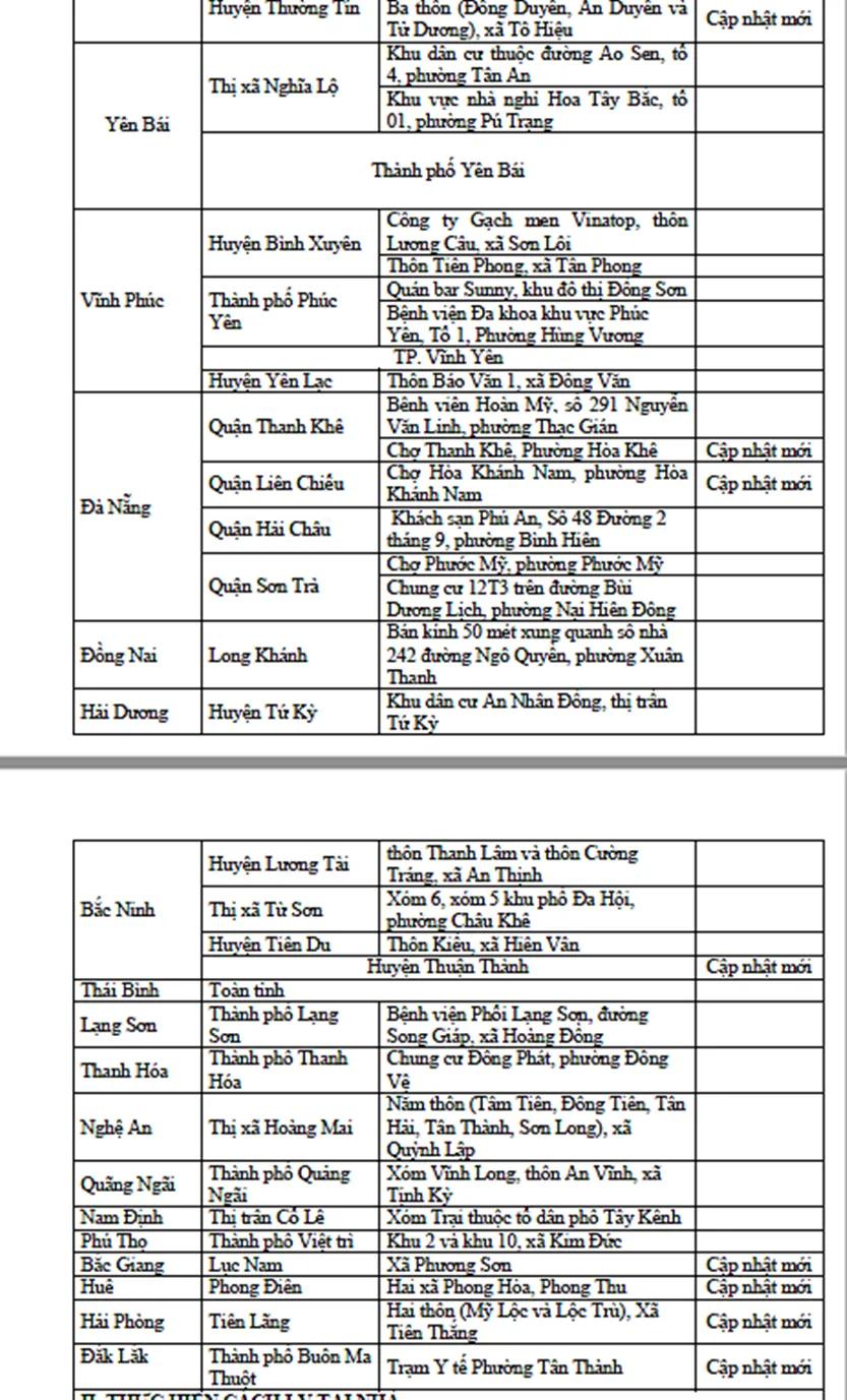 Cùng ngày, ông Nguyễn Quốc Việt, Giám đốc Sở Y tế; Phó Ban chỉ đạo phòng chống COVID-19 Bình Thuận cũng ký công văn tiếp tục cập nhật danh sách các địa phương có liên quan dịch COVID-19 đến Bình Thuận phải cách ly tập trung và cách ly tại nhà.