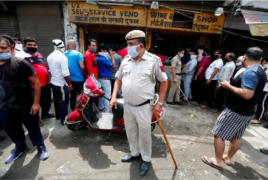 Phát hoảng với cảnh tượng trên, chính quyền New Delhi vội triển khai cảnh sát dùng gậy giải tán hàng người và lệnh các cửa hàng rượu đóng cửa, một nhân chứng nói với Reuters.
