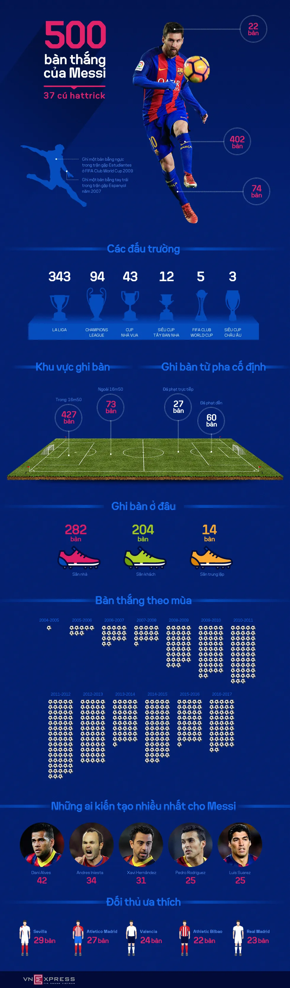500 bàn thắng của Messi cho Barca đến như thế nào?