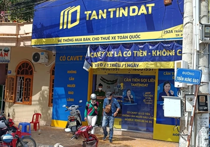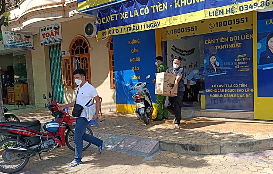 Lực lượng cảnh sát đã khám xét trụ sở làm việc của Công ty TNHH Tân Tín Đạt tại số 78, đường Trưng Trắc, phường Đức Nghĩa, TP Phan Thiết thu giữ nhiều tài liệu, thiết bị có liên quan đến hành vi cho vay lãi nặng trong giao dịch dân sự.