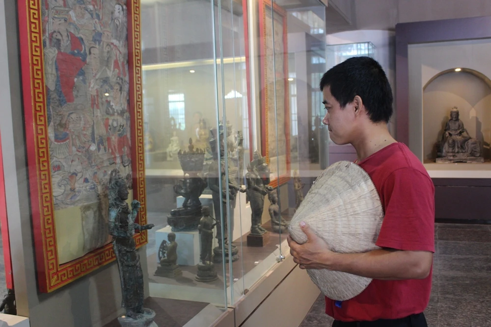 "Nhà tôi cách chùa Quán Thế Âm chỉ vài trăm mét. Mỗi khi mệt mỏi, tôi đều tìm tới bảo tàng này, ngắm nhìn các hiện vật, tự nhiên trong lòng cảm thấy rất nhẹ nhàng, thư thái" - anh Võ Minh Thắng (trú quận Ngũ Hành Sơn) cho hay. Ảnh: T.An